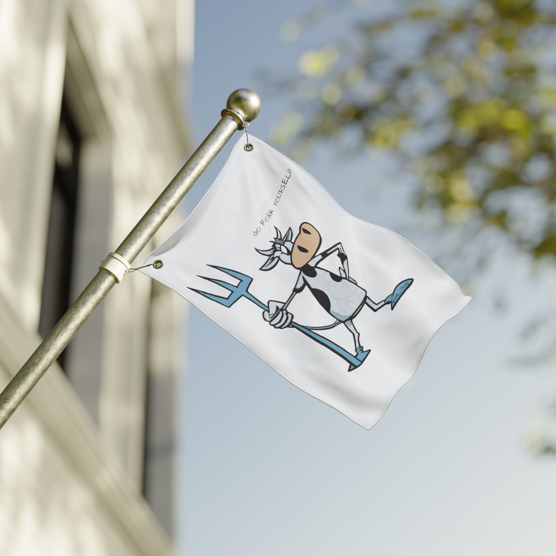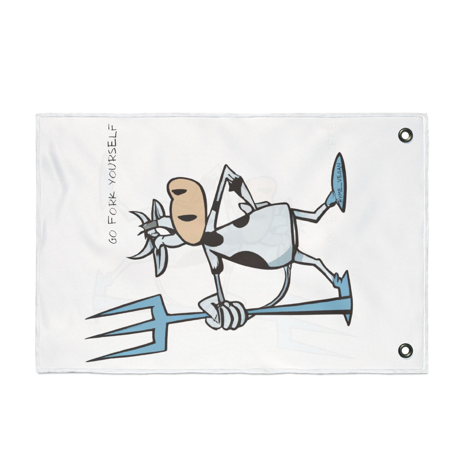 A justice-themed flag featuring a cow fighting against tyranny and protecting the innocent. Perfect for those who stand for justice and righteousness. Ideal for patriotic holidays, political events, and any justice-related celebration.