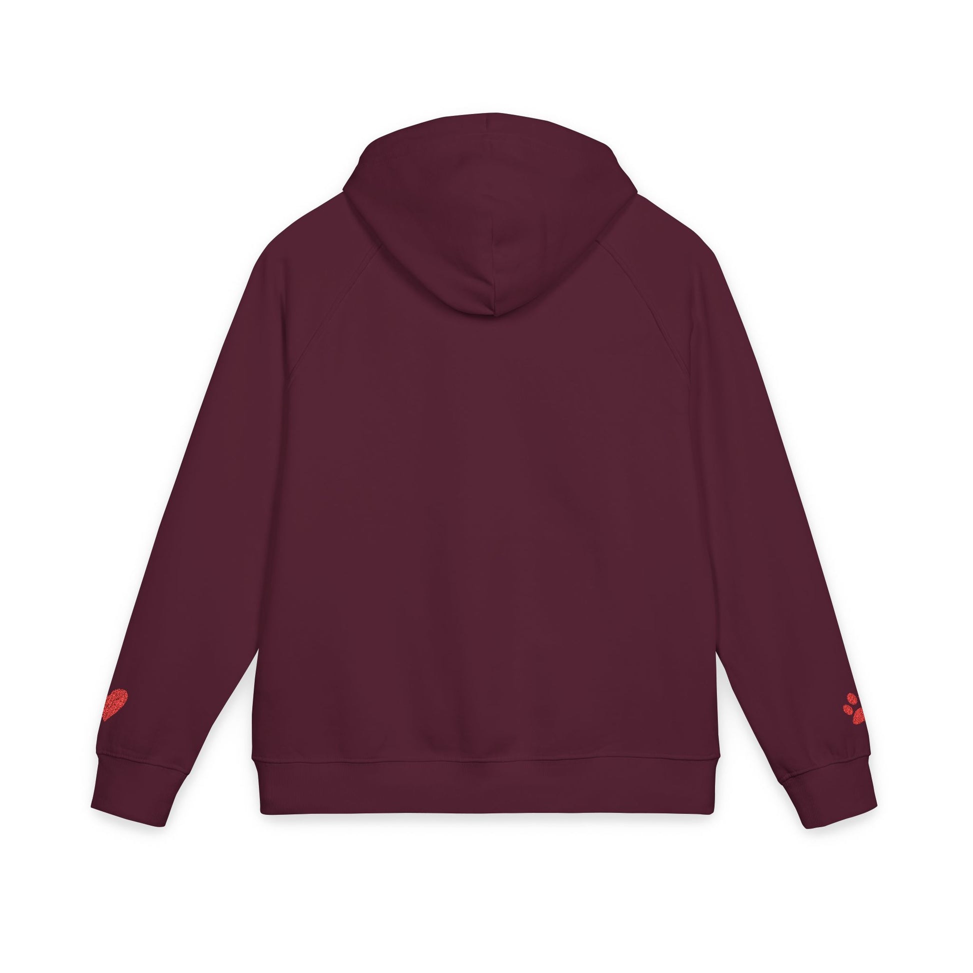 A soft organic cotton raglan hoodie with delicate embroidered accents that feel like little discoveries. The brushed interior and jersey-lined hood make it warm without weight. Subtle heart motifs on the sleeves and a tiny, hand-drawn chest embroidery add a quiet, personal touch — casual enough for every day, thoughtful enough to hold meaning. Wear it on slow mornings with coffee, layered for chilly walks, or while sketching at a sunny window. The breathable, GOTS- and OEKO-TEX-certified fabric sits close to the body and moves with you, so the hoodie becomes part of your routine rather than just another layer.